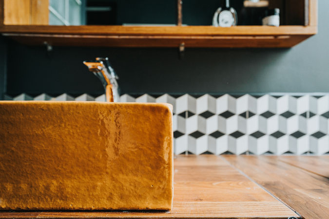 Pour ce projet j'ai proposé un plafond vert, des murs sombres et une vasque colorée.